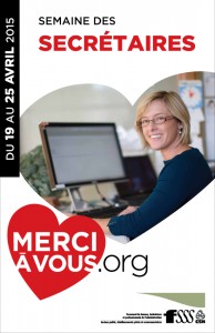 Du 19 au 25 avril 2015, se tiendra la semaine des secrétaires. Le thème retenu cette année, « Merci à vous », souligne l’importance de remercier les milliers d’employé-es de bureau et de l’administration qui se dévouent au quotidien pour donner des services indispensables et de qualité.