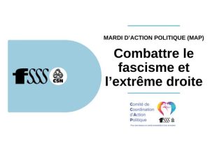 Dans le cadre du Mardi d’action politique (MAP) du 4 novembre, les membres du comité de coordination d’action politique (CCAP) de la Fédération de la santé et des services sociaux (FSSS–CSN) ont abordé un sujet politique d’actualité : la montée du fascisme et de l’extrême droite, ici comme ailleurs.
